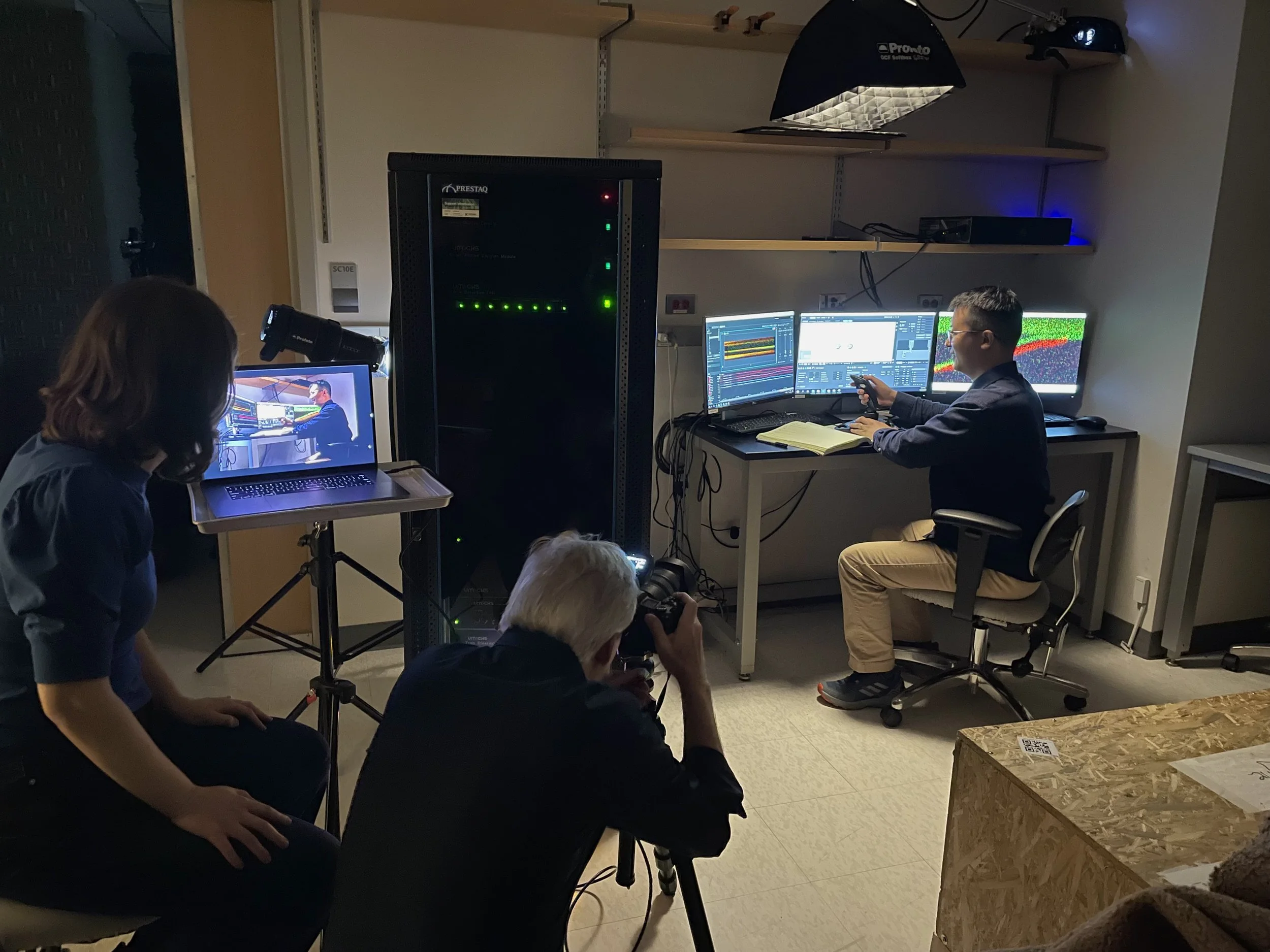 Htet, Masuda, and Gabby film for JoVE